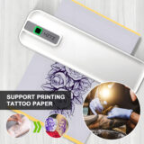 It supports various paper widths and can print on tattoo paper.